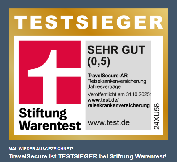 - Ausgezeichnet:Im aktuellsten Finanztest (Ausgabe 05/2024) wurde unsere Auslandsreisekrankenversicherung mit „SEHR GUT“ bewertet und ist Testsieger im Familientarif mit der Note 0,7.